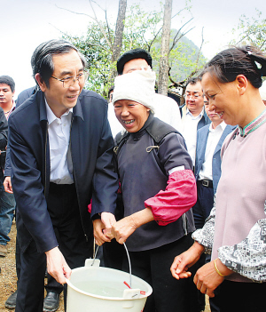 懷揣總理囑托,心系旱區(qū)百姓。3月21日下午,廣西自治區(qū)主席馬飚在云南參加了國務院總理溫家寶主持召開的基層抗旱救災工作座談會后回到南寧。一下飛機,他立即趕往百色市抗旱救災第一線,連夜聽取抗旱救災情況匯報。22日上午,他深入那坡縣視察災情,把總理的關(guān)懷與問候帶給了災區(qū)廣大群眾。