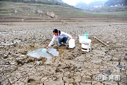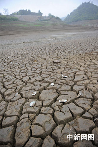 中新網(wǎng)貴陽3月24日電 題:貴州開陽縣干旱災(zāi)區(qū)見聞:飲用水源庫底水族成“化石”