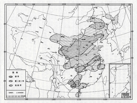 2000年,我國(guó)大部地區(qū)降水偏少,出現(xiàn)大范圍干旱。就季節(jié)而言,干旱主要發(fā)生在春、夏季;就地區(qū)而言,北方受旱范圍廣,干旱時(shí)間長(zhǎng),旱情重,而南方受旱范圍小,干旱時(shí)間短,旱情也較輕。據(jù)有關(guān)部門(mén)統(tǒng)計(jì),全國(guó)累計(jì)受旱面積4054萬(wàn)公頃,成災(zāi)面積2678萬(wàn)公頃,與1971年以來(lái)-的平均值相比,均顯著偏多,屬干旱嚴(yán)重年份。其中受旱面積較大或旱情較重的有河北、山西、內(nèi)蒙古、山東、陜西、甘肅、寧夏、遼寧、吉林、黑龍江、湖北、安徽、江西等省區(qū)。
