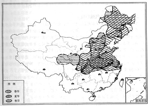 2001年,我國(guó)除華南、西南和河套等部分地區(qū)降水偏多外,其余大部分地區(qū)降水偏少,溫度偏高,大風(fēng)天氣頻繁,繼2000年后再次發(fā)生了大范圍的干旱?偟膩(lái)看,2001年長(zhǎng)江流域極其以北地區(qū)受旱范圍廣、持續(xù)時(shí)間廠、旱情嚴(yán)重,其他地區(qū)相對(duì)較輕。據(jù)有關(guān)部門(mén)統(tǒng)計(jì),全國(guó)累計(jì)受旱面積約3846萬(wàn)公頃,成災(zāi)面積2373.3萬(wàn)公頃,受災(zāi)面積是建國(guó)以來(lái)的第三位(次于2000年、1978年),成災(zāi)面積是建國(guó)以來(lái)的第二位(次于2000年),屬干旱嚴(yán)重年份。其時(shí)空分布特征為:華北、東北南部、西北東部地區(qū)、黃淮、江淮的干旱主要出現(xiàn)在3~6月,重慶、湖北等地的干旱主要出現(xiàn)在3~9月,東北北部的干旱主要出現(xiàn)在4月、6~11月,長(zhǎng)江中下游一帶主要出現(xiàn)在3~5月、7月、9月,四川盆地的干旱主要出現(xiàn)在3~5月、7月。受旱面積較大或旱情較重的有吉林、內(nèi)蒙古、山西、黑龍江、湖北、重慶、河北、四川、安徽、河南、山東、陜西、遼寧等省市區(qū)。