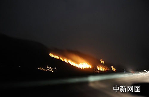 26日晚,中新網(wǎng)記者夜行貴州六盤(pán)水到安順市關(guān)嶺布依族苗族自治縣的路上,在不到三小時(shí)的時(shí)間里,連續(xù)看到5起正在燃燒的山火。其中,在青黃高速穿越的六枝特區(qū)安樂(lè)塘附近層層疊疊的大山中間,一條火龍?jiān)趲鬃降陌胙H蔓延肆虐,遠(yuǎn)遠(yuǎn)望去,猛烈的火勢(shì)映紅天際。而其他幾處山火亦是從山腰向上蔓延,有愈發(fā)猛烈之勢(shì)?吹缴交鸷螅浾唠S即撥打火警119,并從接線員處了解到,或因氣溫升高的原因,當(dāng)晚接到的森林火警數(shù)量較之前幾日陡增,消防部門正會(huì)同林業(yè)及相關(guān)單位協(xié)調(diào)調(diào)集人力滅火,但形勢(shì)仍不容樂(lè)觀。