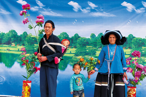 老人說他叫楊華爸,他在廣東打工的兒子想念家中的兩個孩子,昨天恰逢集市,楊華爸與老伴帶著兩個孫子到常么照相館照相,以便寄給兒子。