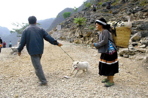 第一站,我到龍英,山路太難走了,摩托車根本不敢走。我只好靠雙腳,一路上,除了出村背水的群眾外,其他都是挑著小豬,或抱著貓狗,或牽著牛馬……