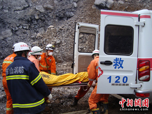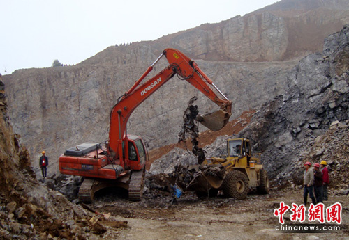 記者在順江采石場救援看到,救援現(xiàn)場濃霧彌漫,最低時,能見度不足10米,但凌晨挖掘出的5輛汽車殘骸不得不讓10多臺挖掘機加緊工作。16:30分許,在1號通道左側(cè)前下方,挖掘機師傅徐斌正在挖土,突然,一個人從泥石堆里滾落出來!翱靵恚腥!甭牭胶奥,消防、武警等救援人員迅速趕到現(xiàn)場,現(xiàn)場所有作業(yè)的機械全部停了下來,山谷中一片寂靜,隨后又一名遇難者被發(fā)現(xiàn),兩名遇難者均在搜救犬定位范圍內(nèi)。
