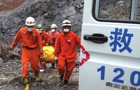 下午4時30分許,又一斗亂石被刨開后,徐斌下意識停滯下來,因為亂石堆中露出了一只手臂。“發(fā)現(xiàn)被埋的兄弟了!”他立即朝對講機(jī)喊話。現(xiàn)場所有的設(shè)備都停了下來,為救援人員進(jìn)入現(xiàn)場讓道。幾分鐘后,一具遺體被救援人員清理出來?粗z體緩緩從坑底抬出,現(xiàn)場一片寂靜。