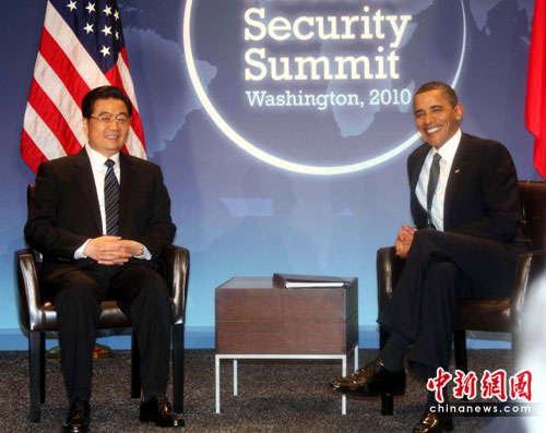 中新社華盛頓4月12日電 (記者 張朔 吳慶才)中國國家主席胡錦濤當(dāng)?shù)貢r間12日下午在華盛頓會見美國總統(tǒng)奧巴馬。