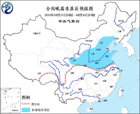受冷空氣影響,預(yù)計(jì),13日夜間到14日早晨,遼寧西部和南部、河北、京津地區(qū)、山西、陜西中北部、甘肅南部和東部、山東、河南、安徽北部、江蘇北部等地將會(huì)出現(xiàn)霜凍。