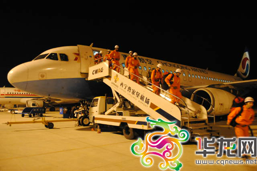 今晨3:30分,經(jīng)過近兩個小時(shí)的飛行,由205名消防官兵和5條搜救犬組成的重慶救援隊(duì),飛抵青海西寧曹家堡機(jī)場。據(jù)重慶救援隊(duì)前指負(fù)責(zé)人介紹,官兵在機(jī)場附近做短暫休整后,將于今日上午8:10分集合,轉(zhuǎn)飛玉樹地震災(zāi)區(qū)展開救援。