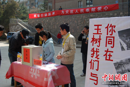 青海省玉樹縣發(fā)生強烈地震后,震區(qū)的災情時刻牽動著與青海情同手足的鄰居——甘肅。15日,西北民族大學發(fā)起了“援助青海玉樹災區(qū)”活動,多個民族的學生為災區(qū)同胞奉獻自己的綿薄之力。