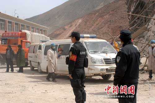 當(dāng)天,180名成都市公安局特警隊(duì)員來到玉樹縣結(jié)古鎮(zhèn)勝利路至機(jī)場沿線19公里的路段,執(zhí)行交通疏導(dǎo)任務(wù)。這條道路是玉樹機(jī)場到縣城受災(zāi)地區(qū)的惟一通道,也是從垮塌建筑物下救出的幸存人員送往機(jī)場的必經(jīng)之路。同時(shí)有大量的救援車輛和物資車輛通過該路段。為保證這條“生命線”暢通無阻,成都特警隊(duì)員每天都會(huì)在沿線的14個(gè)路口執(zhí)勤,疏導(dǎo)交通,維護(hù)車輛通行秩序。高寒地帶的一陣陣大風(fēng)卷著漫天飛舞的黃沙和塵土鋪滿了隊(duì)員的臉上和身上,卻無法掩蓋住成都特警“文明威武”的警姿。