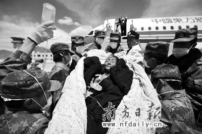 愛從四面八方向玉樹延伸。聽到一聲令下,所有救援力量頃刻出動。人力、財力、物力像潮水一般涌向災區(qū)。