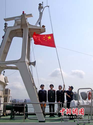 中新網(wǎng)廣州4月21日電 (索有為 陶宇峰)21日,中國海關(guān)機構(gòu)中唯一的島上沒有居民的海島海關(guān)下半旗為玉樹地震遇難同胞志哀,海關(guān)關(guān)員還在緝私艇上為遇難同胞集體默哀。