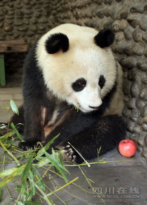 地震后的北川首次發(fā)現(xiàn)大熊貓,而且這只大熊貓身體狀況危急!昨日,這只大熊貓?jiān)诔啥夹茇埢馗綦x檢疫區(qū)接受專家的全方位檢查;孬F醫(yī)院院長楊智稱,通過兩天的緊急救治,大熊貓生命體征基本穩(wěn)定,但目前仍沒有脫離生命危險。專家估計(jì),這只大熊貓是被媽媽攆出家門的。