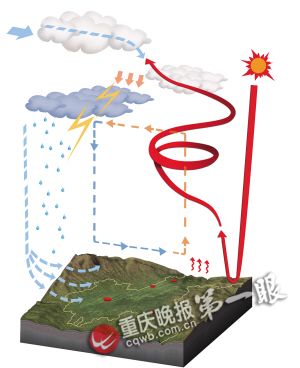 對于此次暴風(fēng),市氣象臺專家解釋,受中高緯大環(huán)流形勢的影響,5日白天,我市氣溫急升,各地高溫飆至30℃~34℃,本地不穩(wěn)定能量聚集,此時,北方冷空氣抵達(dá)四川盆地北部邊緣。5日入夜后,冷空氣繼續(xù)迅速南下,觸發(fā)了重慶不穩(wěn)定能量的強烈釋放,我市自西向東不斷有強對流云團生成,部分對流云團前部形成了很強的下沉氣流,下沉氣流到達(dá)地面就成了強烈的大風(fēng)。在另外一些地區(qū),由于不斷有對流云團生成或移過則形成強降水。