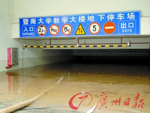 昨日中午,在暨南大學南門教學樓的地下停車場,褐紅色的水淹沒了整個車庫!40多輛車在里頭,全完了。”一名暨南大學的老師告訴記者,這個地下車庫約有4米高,水涌出來,接近外面的地面高度,里頭的車完全沒頂了,“就我們知道的,里頭有1輛才買了3個月的奔馳,還有大半都是才買了一兩年的新車,太可惜了!濒叽罂倓蘸笄诠芾硖幪庨L張安國表示,這可算是暨大20年來最嚴重的一次水浸!八蛞蔀閸忢斉潘こ碳軜(gòu)不良,引起‘倒灌’!(記者黃茜、陸建鑾 通訊員陳文舉、邢曉雯)