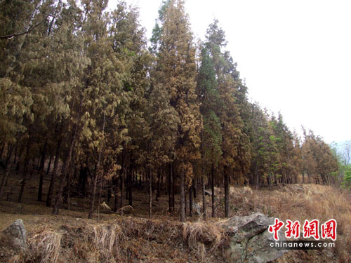 中新網(wǎng)昆明5月14日電( 鄭加升) 百年不遇的大旱,無情的肆虐著云南的大地。三季連旱的天氣,導致云南省東川區(qū)的樹木開始大面積枯萎甚至死亡。
