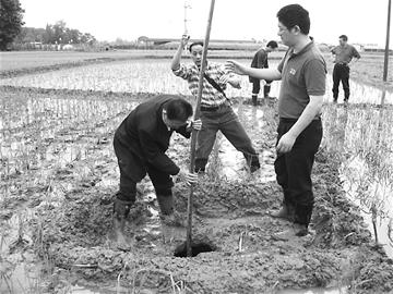 對于如何處理這兩個“天坑”,劉俊賢建議,首先,要在坑洞周圍不小于3米的范圍內(nèi)拉上警戒線,豎立警示標(biāo)志,防止小孩等掉入坑洞內(nèi)。其次,盡快回填塌陷坑洞,回填時應(yīng)分層夯實,避免砂土等透水性較強(qiáng)土體回填,回填后應(yīng)滿足水田種植要求;靥钪,應(yīng)阻擋灌溉水等地表水繼續(xù)流入塌陷坑洞中,以免坑洞進(jìn)一步擴(kuò)大。