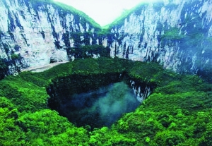 天坑一般叫做天坑地縫,一般下面有地下河穿過。天坑演化歷史比較長(zhǎng),形成的年代至少是幾千年以上。