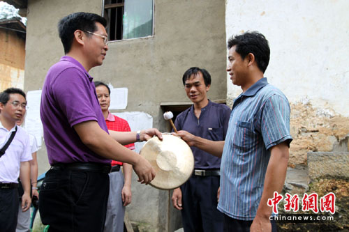 在聽取許多村民的建議后,當(dāng)?shù)毓俜經(jīng)Q定按照村民的意愿,采用比較原始的方法,為全縣每個(gè)村屯配發(fā)一面銅鑼,每個(gè)村屯指定一名地質(zhì)災(zāi)害防御信息員,由縣財(cái)政發(fā)放310元工作補(bǔ)貼。信息員平時(shí)對(duì)本屯的地質(zhì)情況進(jìn)行檢查監(jiān)測(cè),發(fā)現(xiàn)情況立即通知居民撤離到安全地帶,并上報(bào)國(guó)土和相關(guān)部門,在緊急情況下,信息員采取敲鑼的方式通知居民立即撤離到指定的地點(diǎn)。