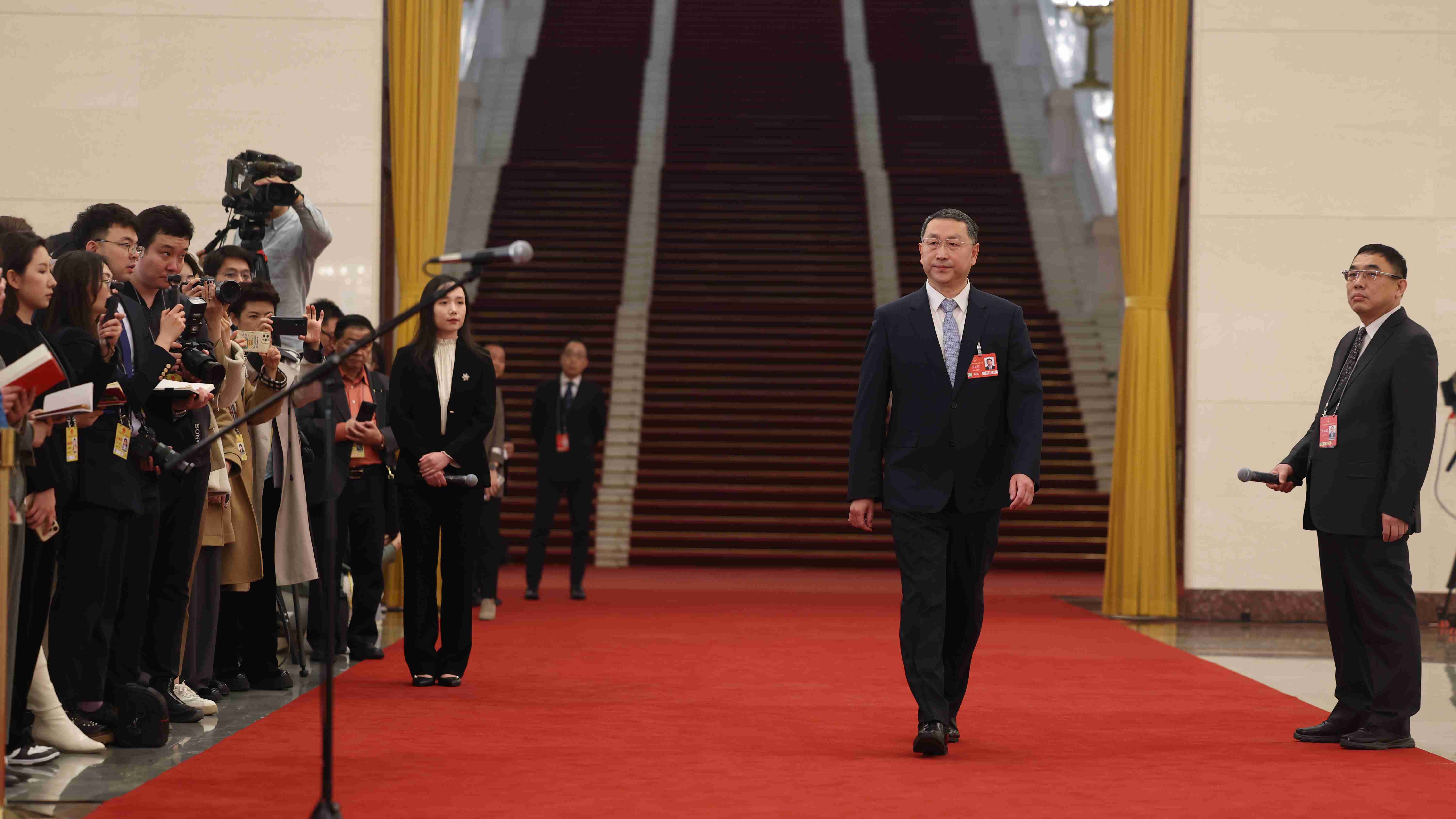 3月8日上午第二次全體會議后,在人民大會堂北大廳舉行十四屆全國人大三次會議第二場“部長通道”集中采訪活動,邀請部分列席會議的國務(wù)院有關(guān)部委主要負(fù)責(zé)人接受采訪。