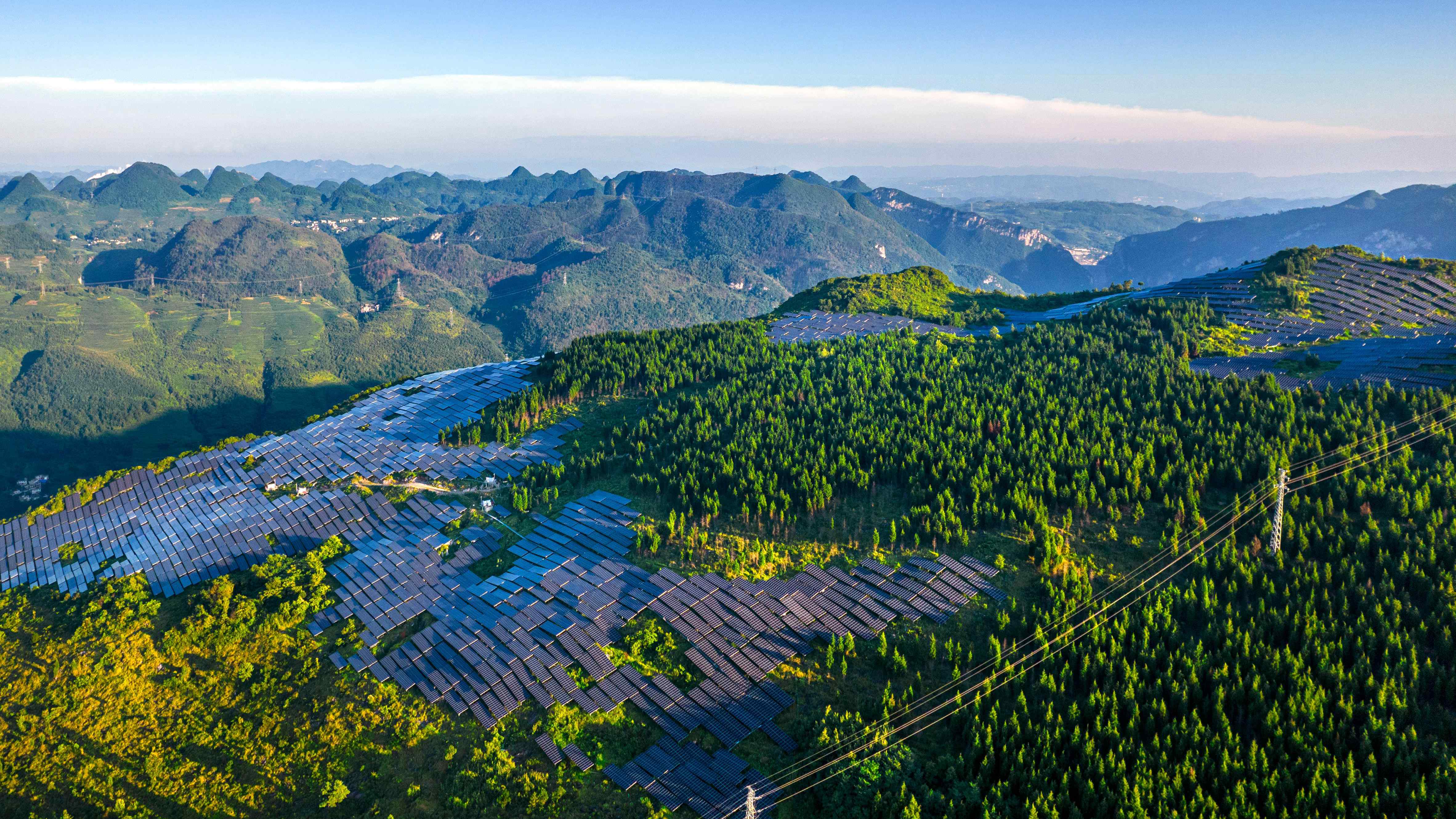 7月2日,在大方縣六龍鎮(zhèn),夕陽西下,一排排光伏板與遠(yuǎn)處的風(fēng)力發(fā)電機(jī)交相輝映,構(gòu)成一幅新能源發(fā)電的“風(fēng)光”圖。2023年以來,大方縣新能源項目已累計并網(wǎng)45萬千瓦,累計發(fā)電約4億千瓦時,節(jié)約標(biāo)煤約12萬噸,減少CO2排放約33萬噸。為區(qū)域能源轉(zhuǎn)型和綠色發(fā)展注入強(qiáng)勁動力的同時,帶動地方實現(xiàn)經(jīng)濟(jì)、生態(tài)雙豐收。