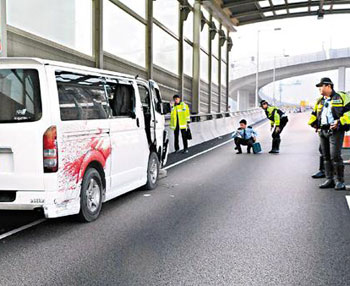客貨車無人駕駛,但仍然繼續(xù)沖前,橫越兩條行車線,再撞左邊石臺(tái),將十多個(gè)“雪糕筒”卷入車底,沖出300米后,再連續(xù)撞擊左石臺(tái),再?zèng)_出100米才停下,車頭和車身毀爛,途經(jīng)駕駛者立即致電報(bào)警。
