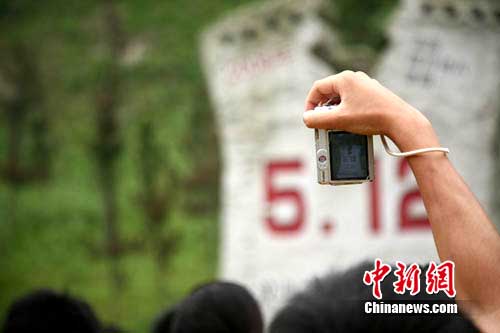 當(dāng)車隊(duì)穿過(guò)龍溪隧道,建設(shè)得如火如荼的映秀新鎮(zhèn)便出現(xiàn)在同學(xué)們眼前。在眾多新建房屋中,幾棟嚴(yán)重傾斜垮塌的建筑引起了大家的關(guān)注。該處是映秀鎮(zhèn)漩口中學(xué),地震中該校六層樓高的教學(xué)樓下陷垮塌變?yōu)楝F(xiàn)在所看到的三層建筑,大部分學(xué)生不幸遇難。聽(tīng)著工作人員的介紹,不少女孩流下了眼淚。