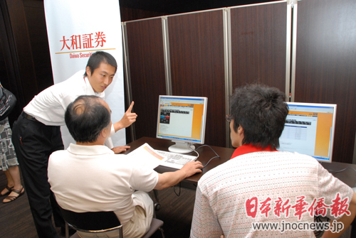 記者在會(huì)場上還看見,大和證券為了舉辦此次說明會(huì),準(zhǔn)備工作可謂面面俱到?紤]到中午時(shí)間,天氣炎熱,參加說明會(huì)的在日華人可能來不及吃午飯,大和證券就特意為大家準(zhǔn)備了豐盛的盒飯和就餐時(shí)間;為了讓參會(huì)者對外匯實(shí)際操作有一個(gè)實(shí)際感覺,大和證券在會(huì)場一側(cè)設(shè)置了數(shù)臺電腦和最新款式的iPad平板電腦供大家模擬操作,遇到疑難問題,大和證券的員工們給予熱心仔細(xì)地解說。