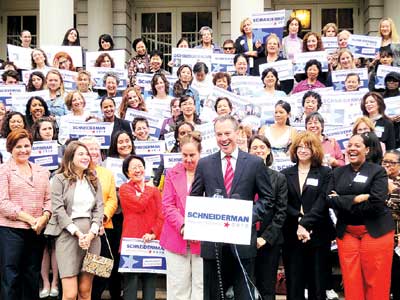 中新網(wǎng)9月14日電 據(jù)美國(guó)《星島日?qǐng)?bào)》報(bào)道,9月14日紐約州初選臨近,今年選舉中以檢察長(zhǎng)一職的選情最為激烈,據(jù)Siena研究所11日所公布的民調(diào),目前民主黨兩位主要參選人史樹(shù)德(Eric Schneiderman)僅以2%領(lǐng)先韋嘉蓮(Kathleen Rice),因此鹿死誰(shuí)手還是未知之?dāng)?shù)。兩人各自都積極在華人社區(qū)打選戰(zhàn),至12日仍在作最后沖刺。