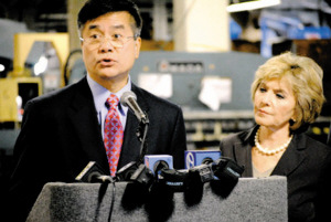 主流政治人物走入華人社區(qū)拉票的同時(shí),更不忘搬出華裔政要站臺(tái)。紐約州競(jìng)爭(zhēng)激烈的檢察長(zhǎng)之爭(zhēng),主參選人就各有華裔擁躉。競(jìng)選連任的聯(lián)邦參議員鮑克塞日前更請(qǐng)來華裔商務(wù)部長(zhǎng)駱家輝站臺(tái)助選。無論登廣告宣傳政見,抑或深入華人社區(qū),主流政客看重的無疑是華裔日益增強(qiáng)的選票實(shí)力。(綜欣)