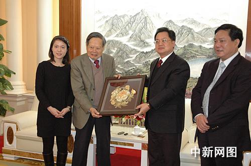 會見后,駱文智向楊氏伉儷贈送了潮州特色的潮繡“金牡丹”,并宴請了楊氏伉儷。晚宴后,楊振寧夫婦還在駱文智的陪同下,參觀了潮州市傳統(tǒng)工藝精品館、潮州文化藝術中心和潮州博物館。完