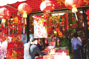 虎年的腳步聲近了,中國城的大小商家鉚足了勁,準(zhǔn)備來個(gè)“開門紅”,以虎為圖案的宣傳招牌到處可以看見。走在中國城的街道上,最能夠吸引大家眼球的是迎新春的“中國紅”的各種飾物。“虎年招財(cái)”掛件,紅燈籠,紅春聯(lián),紅色的吉祥物、招財(cái)進(jìn)寶的童子,健康長壽的壽星,顏色全部以紅色為基調(diào),讓整條百老匯大街喜氣洋洋。店員珍妮告訴記者,前來詢問“虎年商品”的華人、“洋人”都很多,他們都很懂中國新年,知道挑選與生肖有關(guān)的小商品。她說,不少學(xué)校的老師,也前來購買一些“虎年紅包袋”及可愛小老虎的飾件;這些東西老師都將用于課堂,讓學(xué)生了解中國人過年的民俗,他們還會(huì)給學(xué)生發(fā)“新年紅包”。