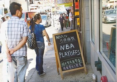 NBA季后賽一個月以來,特別是在晚餐時間,華埠許多中餐館在晚餐時間將電視畫面固定在體育頻道,有的大酒樓也不例外。顧客在餐廳停留的時間增加了,消費金額也會有所增多,業(yè)者既賺人氣,又有買氣。