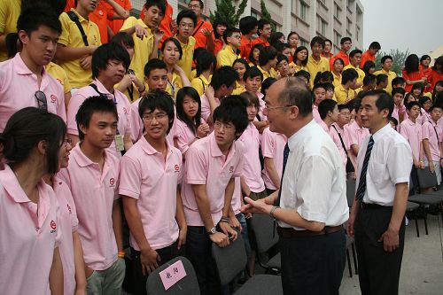 中新網(wǎng)7月22日電(董方) 北京華文學院2009年暑期漢語夏令營活動自7月初正式拉開帷幕以來,吸引了來自法國、意大利、英國、美國等歐美國家和印尼、泰國等東南亞國家的6個團隊共225名華裔青少年參加。7月22日早上,身著夏令營服裝的學生們早早就聚集在學校的操場上,由于身處不同的團隊,學員們大都互不相識,然而大家都按耐不住激動的心情,因為就在這里他們將留下第一張“全家!。