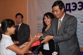 中新網(wǎng)9月1日電 為慶祝中華人民共和國(guó)成立60周年、中蒙建交60周年以及《蒙古消息報(bào)》中文版創(chuàng)刊80周年,中華人民共和國(guó)駐蒙古國(guó)大使館與蒙古通訊社于8月5日至25日聯(lián)合舉辦了題為“我眼中的中國(guó)”漢語(yǔ)征文比賽。
