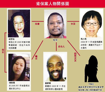 檢控官奧爾頓(Jennifer Oulton)當(dāng)日開(kāi)案陳詞時(shí)披露大量案情細(xì)節(jié),包括死者遇害詳情及肯保牟利手法等,并指控肯保均有預(yù)謀地先開(kāi)設(shè)銀行賬戶,以受害人名義購(gòu)買(mǎi)保險(xiǎn)等,再先后殺害其前妻梁思悔(Margaret Kembo)、生意合伙人塞繆爾(Ardon Samuel)、情人馬小燕(Sui Yin Ma)及繼女楊德慧(Rita Yeung)。