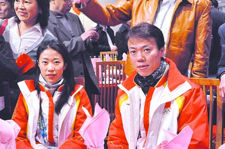 500多名僑界代表當(dāng)日共同守候功臣們的到來(lái),奪金的花樣滑冰雙人滑選手申雪和趙宏博剛到場(chǎng),便受到英雄和明星式的待遇,從進(jìn)場(chǎng)到坐下便好像“手握不完、相影不完、名簽不完!