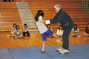 記者發(fā)現(xiàn),幾十名華裔女生大都比較害羞,吶喊聲音很小,動作也只是點到為止。相比之下,西裔女生則很認真,而且敢于上場與“色狼”對練。華裔11年級女生陳青青表示,學(xué)了自衛(wèi)術(shù)之后,覺得很有用,起碼在遇到被色狼攻擊的時候不會那么害怕,知道該怎樣應(yīng)付,如何脫身。