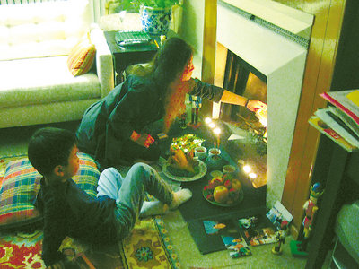 一些華人在自家壁爐燒紙錢紀念親人。 (美國《世界日報》)