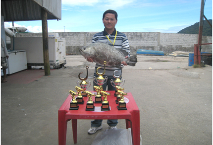 23日中午,大家滿載著喜悅和收獲陸續(xù)回到岸邊。在簡短的頒獎儀式上,頒發(fā)了獎杯和獎金。會長吳耀宙先生以單條最重獲得第一名,成績是7.18kg,并獲得獎金800元;獲得第二名的是來自韓國的DANIEL李先生,成績是5.98 kg,并獲得獎金500元;獲得第三名的是ANDRE陳先生,成績是5.00 kg,并獲得獎金300元。7條船上的優(yōu)勝者也得到獎杯和紀(jì)念品。