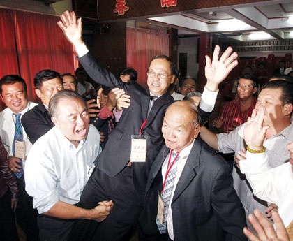 中新網(wǎng)9月28日電 據(jù)馬來西亞《光華日?qǐng)?bào)》報(bào)道,馬來西亞中華大會(huì)堂總會(huì)(華總)改選“大海嘯”,由彭亨州華堂會(huì)長(zhǎng)方天興以59張多數(shù)票,以94票對(duì)35票擊敗隆雪華堂會(huì)長(zhǎng)陳友信,以一面倒高姿態(tài)當(dāng)選為新一屆總會(huì)長(zhǎng)。