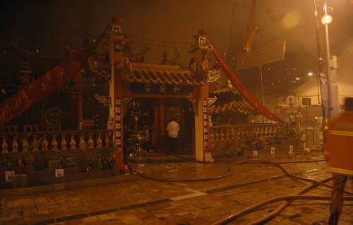 他指出,15名包括他在內(nèi)的消拯員用了25分鐘撲滅火勢(shì),及時(shí)阻止火勢(shì)蔓延至鄰近民宅!拔覀兊诌_(dá)時(shí),發(fā)現(xiàn)廟宇內(nèi)部中間起火,可是由于前門(mén)深鎖,我們唯有從廟宇的后門(mén)破門(mén)而入!彼f(shuō),由于廟宇內(nèi)有許多易燃物品,所以火勢(shì)蔓延得很快,內(nèi)部近60%遭燒毀。