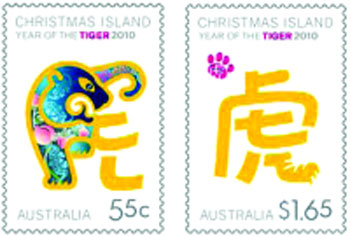 中新網(wǎng)1月13日電 據(jù)澳洲《星島日報》報道,為紀念2010農(nóng)歷新年虎年的來臨,澳洲郵局特別推出一套由墨爾本設計師潘德妮設計的別致虎年郵票。