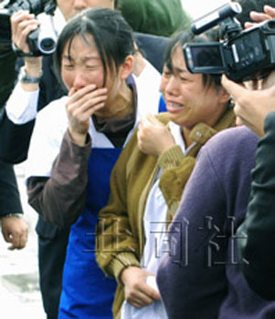 宋方的父親9日抵達森町認領女兒尸體。靈柩車途經(jīng)宋方生前所在工廠時,同事們淚流滿面前來送行。