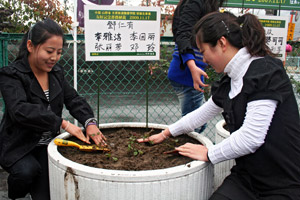 中新網(wǎng)11月18日電 據(jù)日本新華僑報(bào)網(wǎng)報(bào)道,17日,正在日本山梨縣笛吹市石多家溫泉工作的中國(guó)研修生們?cè)谟^光車(chē)站附近栽種下一簇簇美麗的薔薇花。