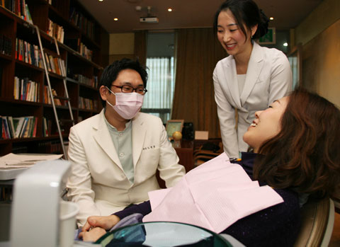 中新網(wǎng)1月7日電 據(jù)韓國《朝鮮日?qǐng)?bào)》報(bào)道,5日,韓國首爾江南區(qū)清潭洞的牙科11層!鞍 珱Q定治療了嗎?牙的哪個(gè)部分不合您的心意?”院長No Jeong-jun向身穿紫色針織T恤躺在診療臺(tái)上的日本人患者問道。站在旁邊的院方咨詢服務(wù)師當(dāng)即做了翻譯;颊哒f“我的牙歪歪斜斜地太不整齊了”。她是3日為接受牙齒貼瓷整形治療以4天日程訪問韓國的日本主婦崎本。