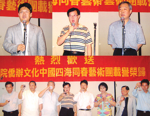 國(guó)僑辦藝術(shù)團(tuán)熊昌良團(tuán)長(zhǎng)在致詞中對(duì)菲華各界聯(lián)合會(huì)與大使館聯(lián)合舉辦隆重的歡送會(huì)表示感謝。對(duì)菲華各界聯(lián)合會(huì)為藝術(shù)團(tuán)在菲的演出和生活做出的辛勤工作表示衷心的感謝。
