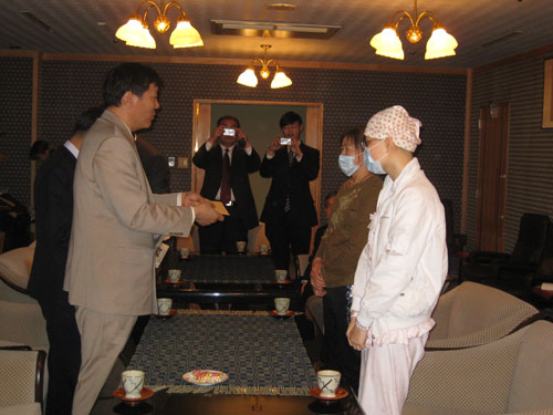 程雯激動地對趙大為領(lǐng)事表示:“是祖國和日本各界友人和臺灣同胞救了我,我一定要報答大家的恩情!背迢┑哪赣H吳國榮不停地流著眼淚,她說:“大家救了我女兒的命,女兒如果病好了,將來一定要報效祖國,做中日友好的橋梁!