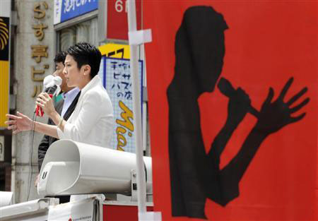 24日上午,“菅丸”的行政改革擔當大臣蓮舫作為東京選取候選人,為爭取獲得即將于7月舉行的日本國會參議院競選的候選人資格,在東京都日本鐵路JR新橋站前廣場開始了自己的首場演講。