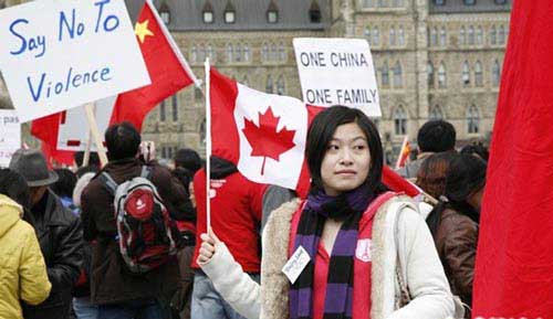 報道說,組織者搭起了演講臺,以中英文向在場民眾發(fā)表演講。集會者情緒高漲,在現(xiàn)場高唱《義勇軍進(jìn)行曲》、《黃河大合唱》、《可愛的中國》等歌曲。集會現(xiàn)場準(zhǔn)備了大量彩色印刷的英文傳單,其中包括致加拿大總理哈珀的公開信、反映拉薩暴力事件真相的照片。記者注意到,集會現(xiàn)場有不少非華裔人士。